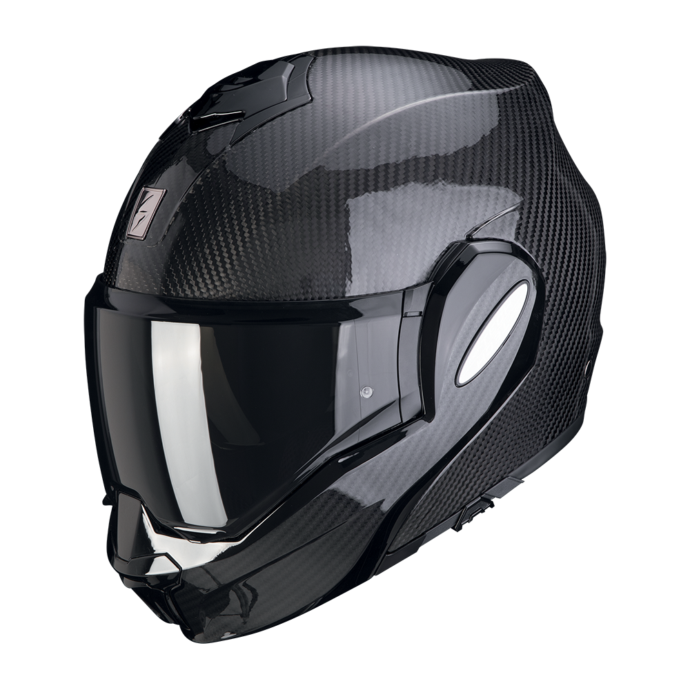 Il casco modulare “flip-back” Exo-Tech Carbon è realizzato con calotta in carbonio e ha una mentoniera ribaltabile di 180gradi.